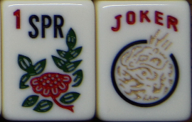 Some Mah Jongg sets have different designs on each of the 8 flower tiles, but they are all interchangeable in American Mah Jongg. In addition to a flower (or some other design), the “flower” tiles often have a season (SPR=spring, for example) and a number. The season and number are not used in American Mah Jongg. Our MahJonggPro tiles have pictures of our flowers.